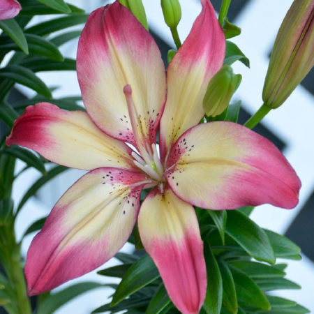 Crinul Imperial Parfumat "American Dream" este o plantă elegantă, care poate atinge o înălțime de 90-120 cm și produce flori mari, de 20-25 cm în diametru, cu o nuanță delicată de alb cu accente roz și un parfum dulce intens. Ideal pentru grădini sau terase, acest crin se plantează primăvara, între lunile aprilie și mai, atunci când solul s-a încălzit și nu mai sunt riscuri de îngheț. Înflorește vara, între lunile iunie și august, aducând o notă de rafinament și frumusețe în orice colț al grădinii. Preferă locurile însorite și un sol bine drenat, fiind perfect pentru a crea puncte de atracție în peisajul tău floral.
