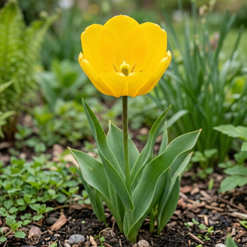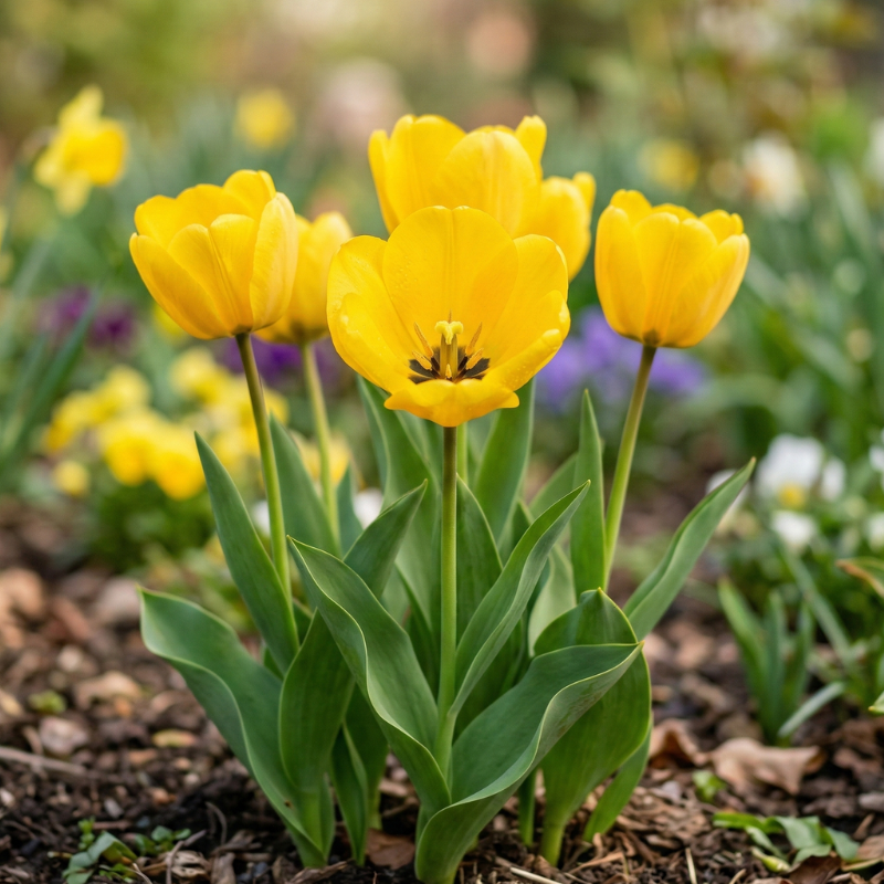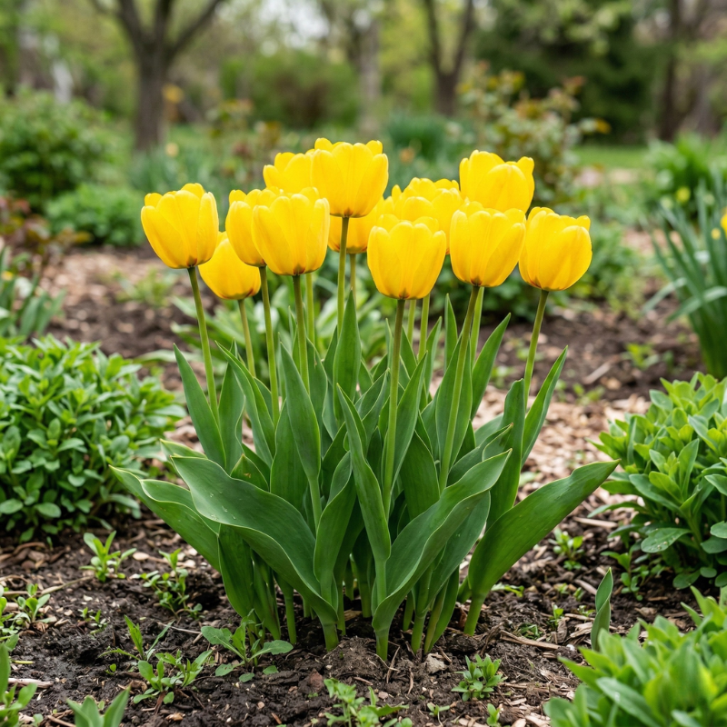 Lalelele galbene simple sunt simbolul optimismului. Cu flori mari și tije robuste, aceste lalele ies în evidență de la distanță și rezistă excelent la intemperiile de primăvară.
