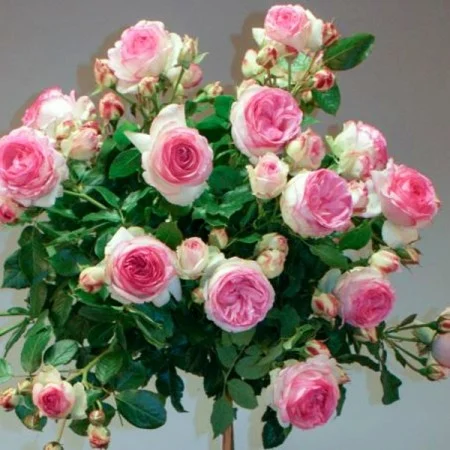 Trandafirul Pomișor Plângător Alb-Roz oferă un joc cromatic minunat. Coroana sa curgătoare este presărată cu flori care combină albul pur cu nuanțe de roz, uneori în aceeași floare sau în buchete mixte, în funcție de stadiul de înflorire. Efectul este unul de prospețime și veselie. Este un punct de atracție irezistibil, transformând orice colț de grădină într-un peisaj de basm.